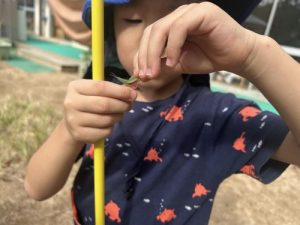 夏場に大改造して川ができた園庭には草がしっかりと根を張り、バッタや虫の住処となりました。虫が居るところには鳥もやってきます。ちょっとずつ森みたいにしていきたいな~と。 園庭に出て早速バッタを見つけたり、樋をつなげて水と一 […]