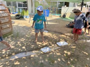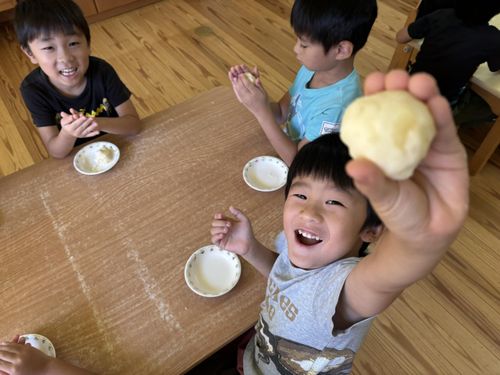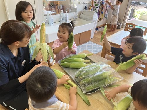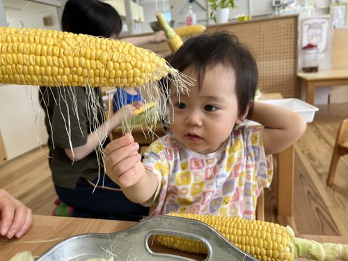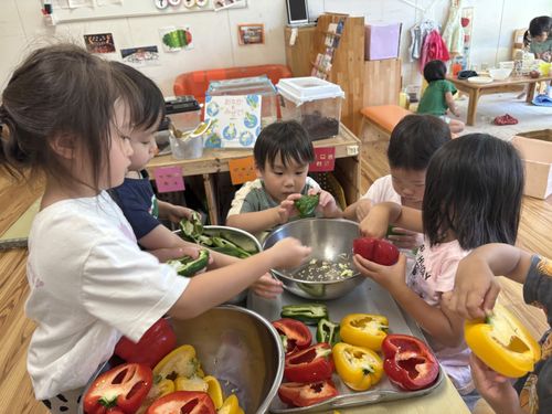 お昼ご飯用に玉ねぎの皮むきやピーマンの種取りを小さな手をしっかり使ってお手伝い。小さなお調理員としても大活躍。