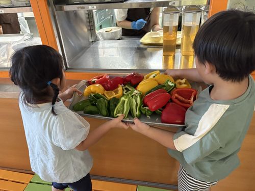 お昼ご飯の時「●●くんが種とったピーマンだよ」の声掛けで、ピーマンの炒め物を勇気をもって口に運ぶ姿も。