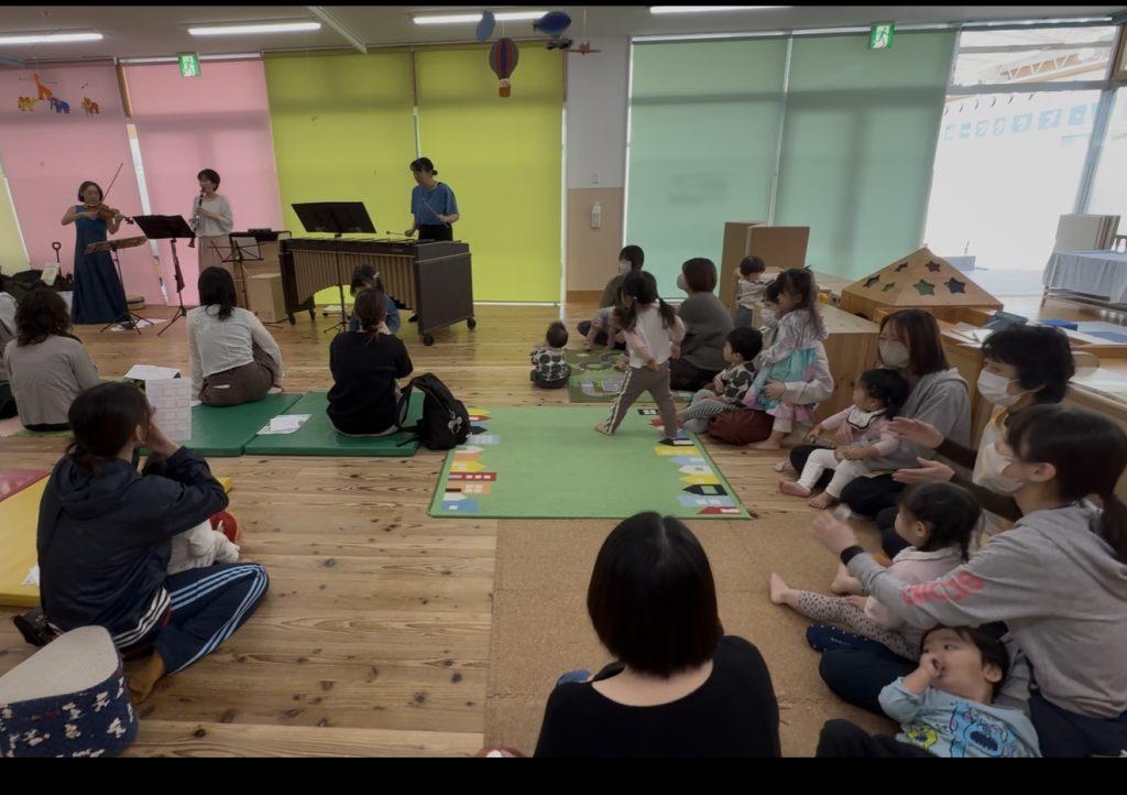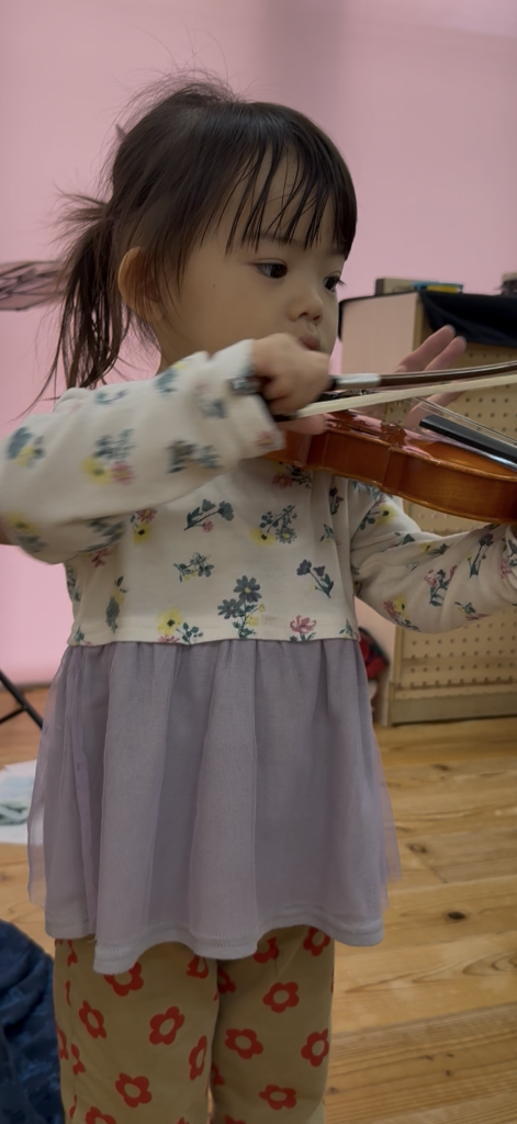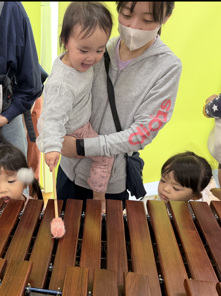 自分で楽器を鳴らす楽しさを全身で感じる子ども達。